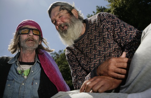 hippies t September 27, 2015500 × 3272007-photo-2 (D) 3 (6.6.07. San Francisco, CA) – Between gulps of malt liquor and wine, Saxophone Jack, left, and Max sing on a hill of Buena Vista Park off Haight Street. « Previous Image Next Image »