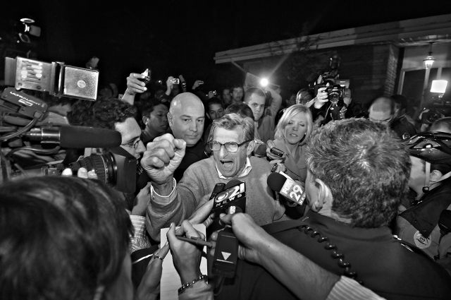 Former Penn State head coach Joe Paterno rallies fans and the media outside his home in State College on Nov. 8, 2011. About 300 students gathered in support of Paterno, before his firing by the Penn State Board of Trustees.